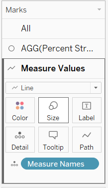 - Click on the Measure Value Marks cart and change the Marks type to Line