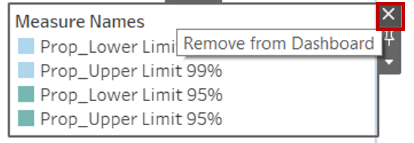 - Select the Measure Names Legend. Click on the Remove from Dashboard button