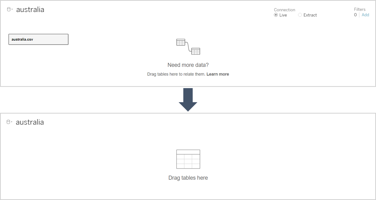 - Remove the Logical Table of Australia from the Data Source Selection pane