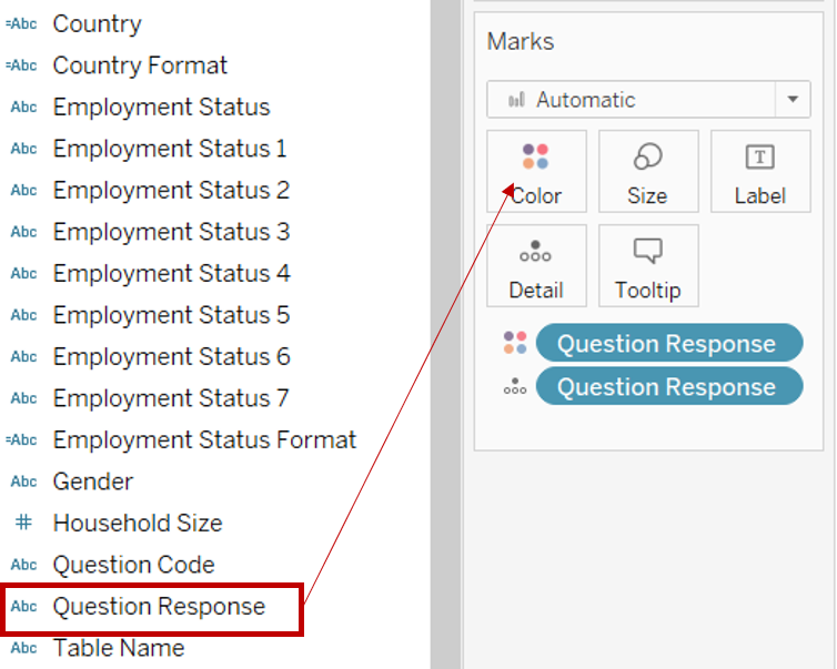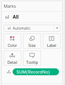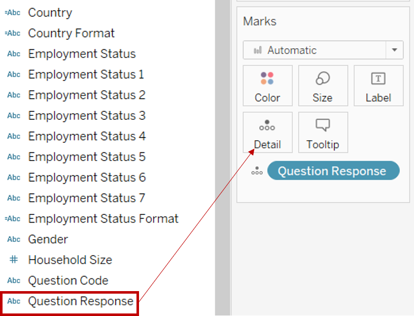 Drag [RecordNo] under Detail of the All Marks Pane to keep the data at the individual respondent record level
