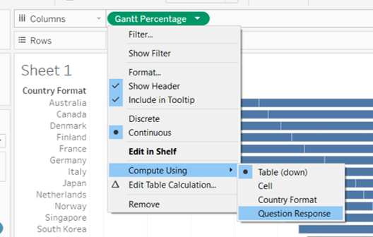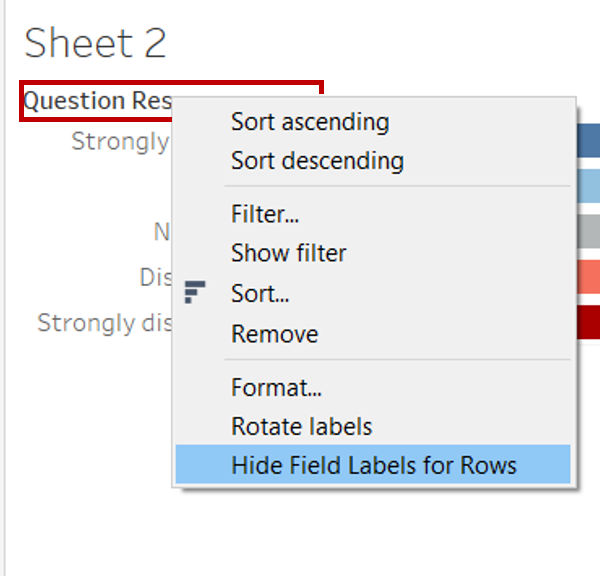 - Right click on the “Country Format” label just above the y-axis and select Hide Field Labels for Rows
