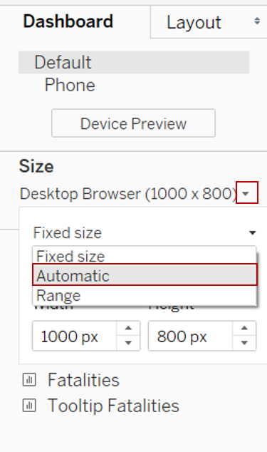 - Resize the chart size to a smaller area to fit into the tooltip by hovering along the bottom or right of the chart area until the resize arrow appears