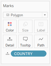 - From the left Data pane, drag [COUNTRY] to Detail under the Marks cart