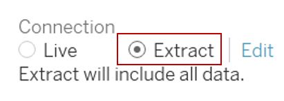 - At the top right corner under Connection, convert the connection from Live to Extract to allow publishing to Tableau Public