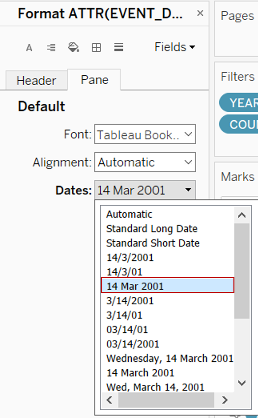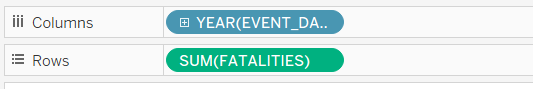 - From the left Data pane, drag [FATALITIES] to Rows and [EVENT_DATE] under Columns