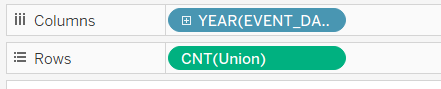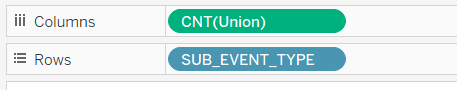- From the left Data pane, drag [SUB_EVENT_TYPE] to Rows and [Union (Count)] under Columns