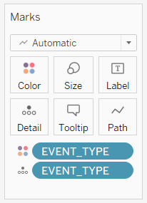 - Drag [EVENT_TYPE] from the left Data pane to Color under the Marks cart