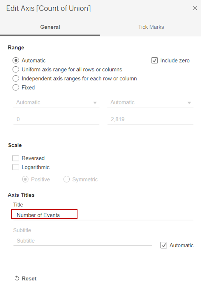 - Click on [Count of Union] Legend and click the dropdown arrow on the left. Select Edit Title. In the popup “Edit Legend Title” dialog box, change the title to “Event Count”