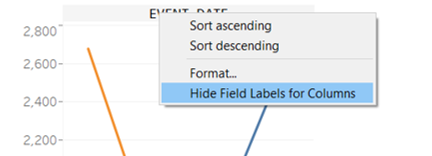 - Right click on the “SUB_EVENT_TYPE” label just above the y-axis and select Hide Field Labels for Rows