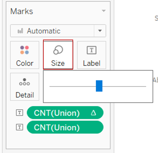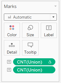 - Drag another [Union (Count)] from the left Data pane to Label under the Marks cart. This is meant for the count label