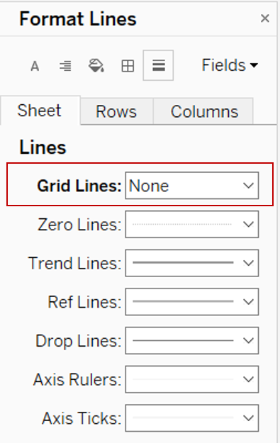 - Right click within the area of the chart and select Format. Click on the Lines button. Under Sheet tab, click on Grid Lines and select None