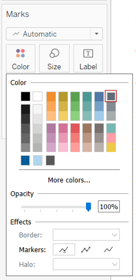 - Click on Color under the Marks cart and change the colour of the line to grey