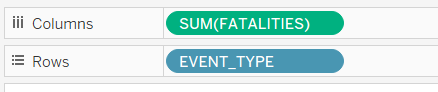 - From the left Data pane, drag [EVENT_TYPE] to Rows and [FATALITIES] under Columns